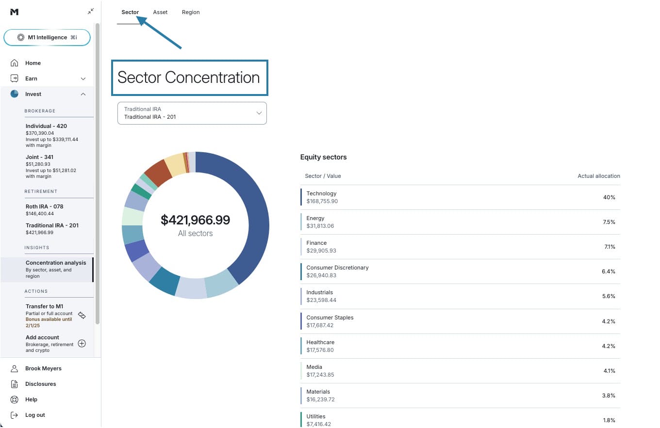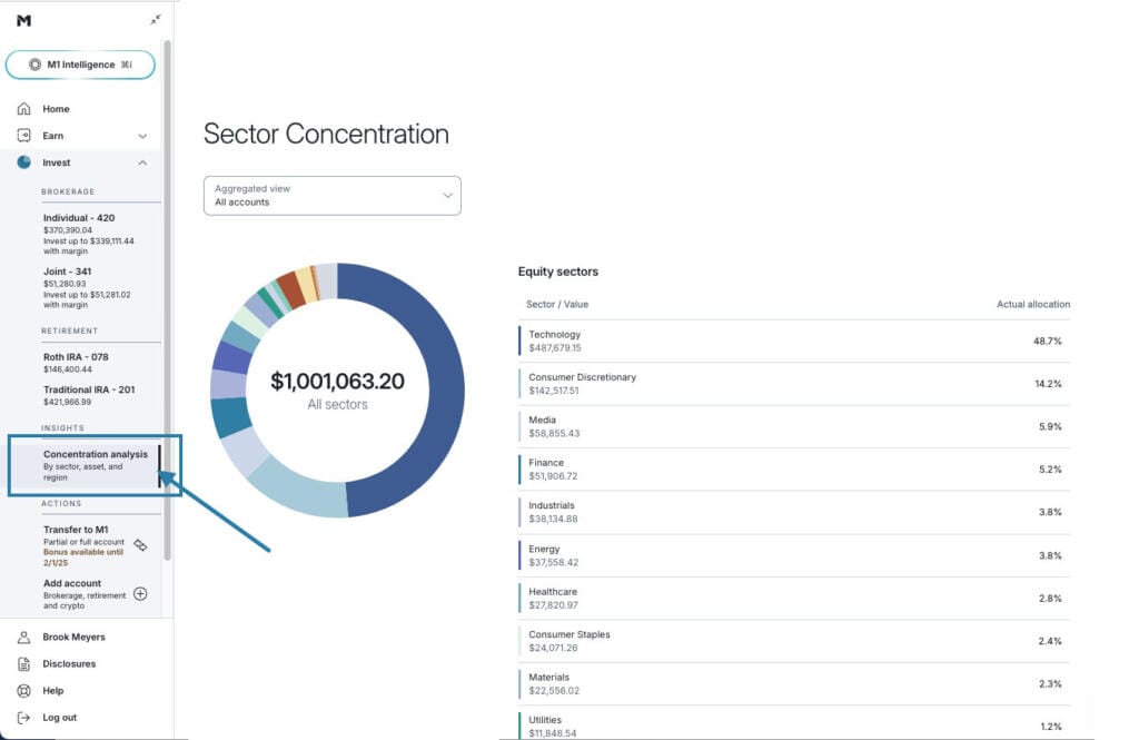 Want to know if your investments are concentrated in the areas you want? Or if your portfolio is sufficiently diversified? M1’s newest feature, Concentration Analysis, can help you find the answers. It’s the latest in our expanded Insights tab, designed to empower you to make data-driven investment decisions.