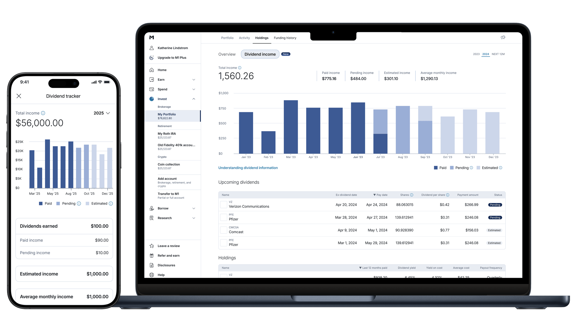 You can also use dividend income to help your portfolio grow holistically. This is the default setting on M1—dividends are added to your Invest account balance.