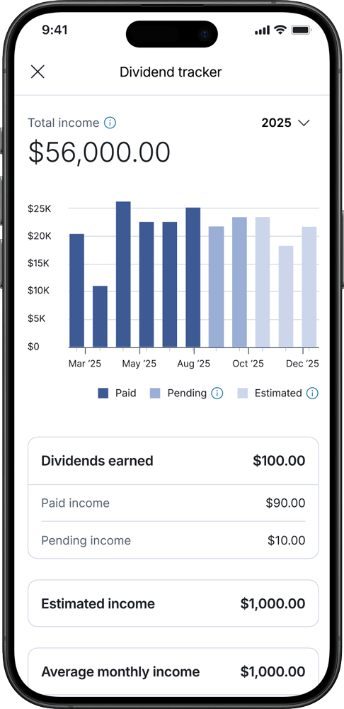 See a breakdown of your dividend income in an informative chart. You can get insights into your wealth-building journey, so you’re always on top of your strategy.